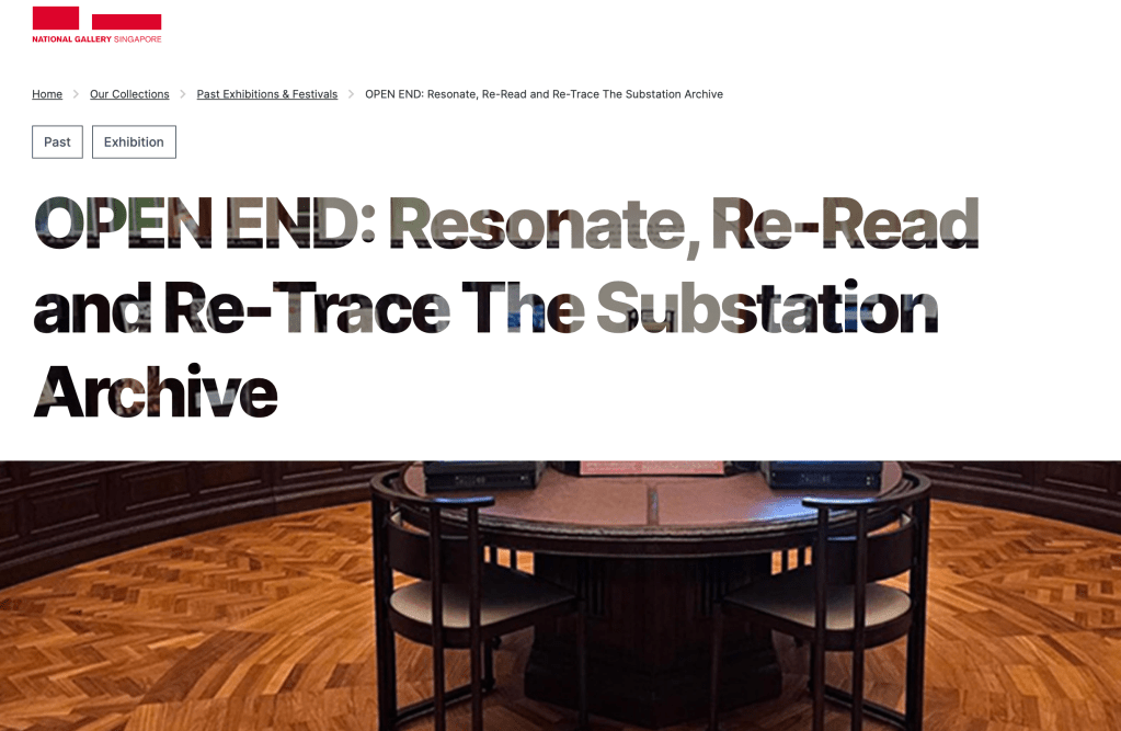 OPEN END: Resonate, Re-Read and Re-Trace The Substation Archive is a critical curatorial project through which I engage with the archival legacy of The Substation, Singapore’s first independent contemporary arts space (1990–2021).